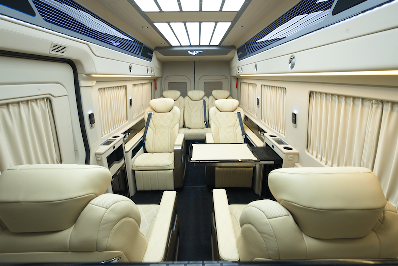 Dòng xe Limousine 10 ghế VIP thương gia được thiết kế để phục vụ những chuyến công tác đưa đón chuyên gia cấp cao hay đối tác quan trọng với tiêu chuẩn tiện nghi và riêng tư bậc nhất.
