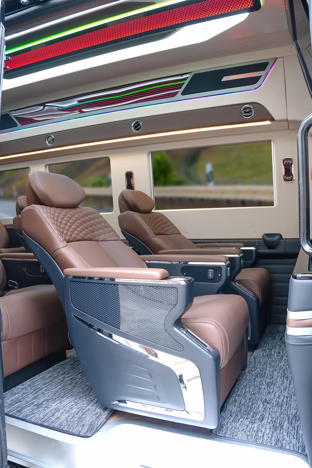 Cấu hình 10 ghế VIP tích hợp nâng chân, ngả lưng chỉnh điện và massage túi khí, mang đến trải nghiệm thư giãn toàn diện và thoải mái trên mọi hành trình.