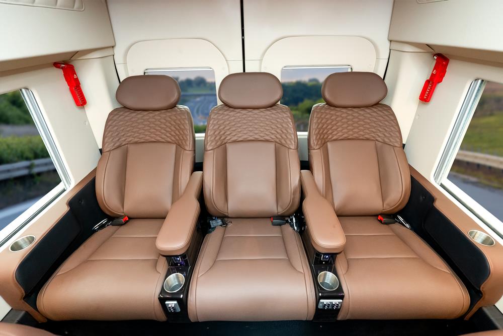 Trang bị 2 ghế VIP bọc da Nappa Lux cao cấp, ngả lưng độc lập, mang lại sự thoải mái và linh hoạt tối đa cho từng vị trí ngồi. Tích hợp tủ lạnh dung tích 18L, sẵn sàng phục vụ nhu cầu giải khát trong suốt hành trình.