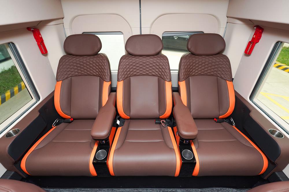 Cấu hình 10 ghế VIP tích hợp nâng chân, ngả lưng chỉnh điện và massage túi khí, mang đến trải nghiệm thư giãn toàn diện và thoải mái trên mọi hành trình.