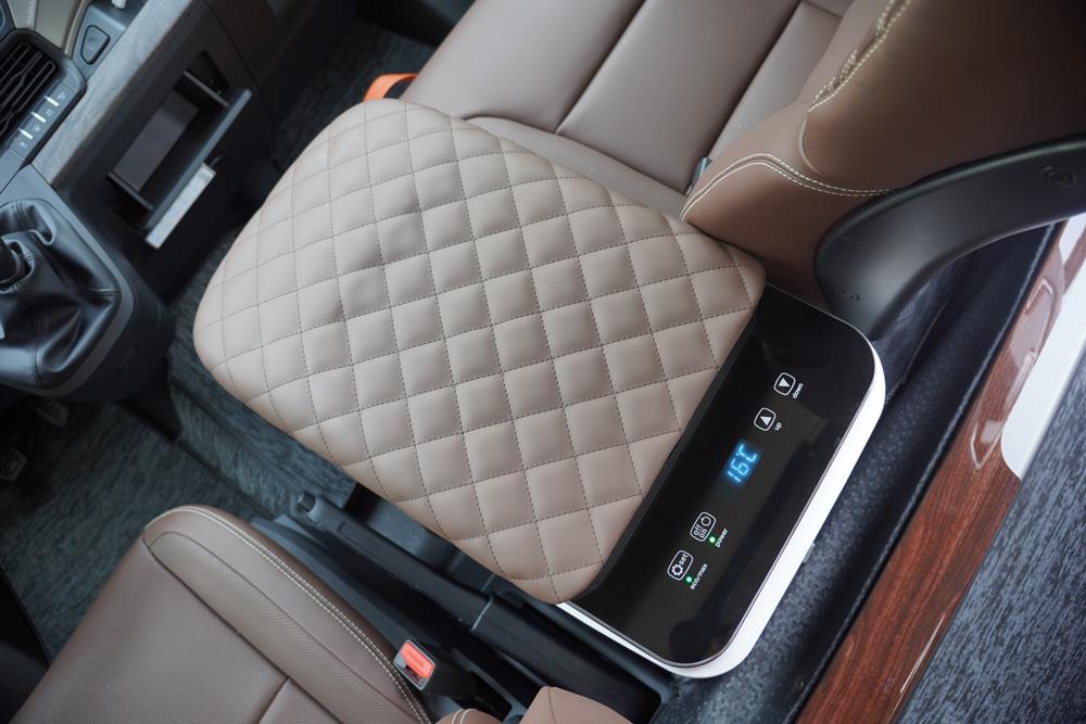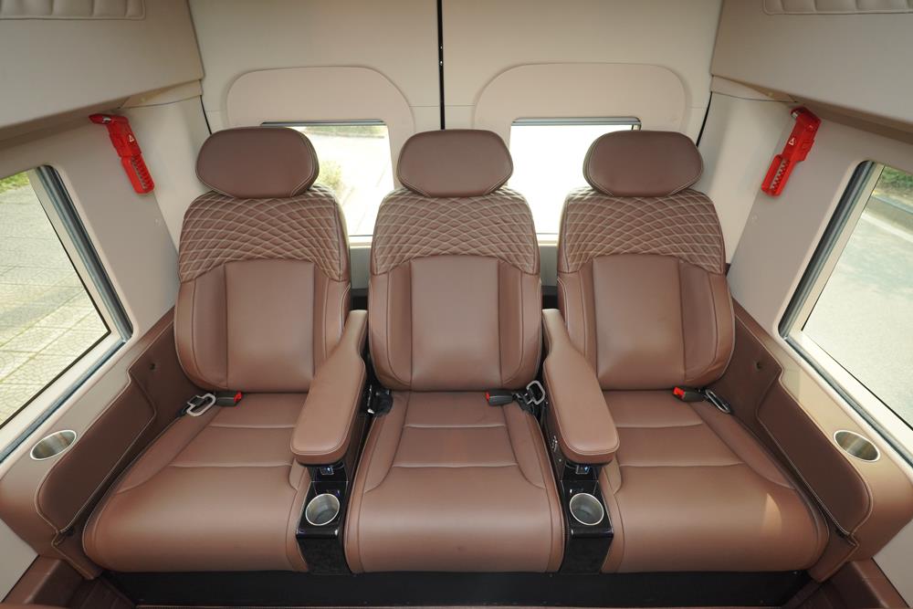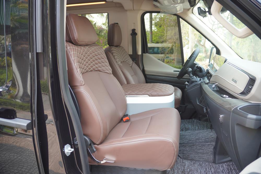 Trang bị 2 ghế VIP bọc da Nappa Lux cao cấp, ngả lưng độc lập, mang lại sự thoải mái và linh hoạt tối đa cho từng vị trí ngồi. Tích hợp tủ lạnh dung tích 18L, sẵn sàng phục vụ nhu cầu giải khát trong suốt hành trình.