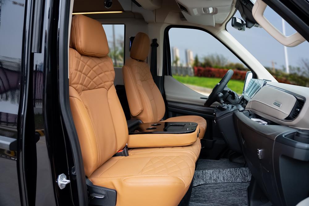 Trang bị 2 ghế VIP bọc da Nappa Lux cao cấp, ngả lưng độc lập, mang lại sự thoải mái và linh hoạt tối đa cho từng vị trí ngồi. Tích hợp tủ lạnh dung tích 18L, sẵn sàng phục vụ nhu cầu giải khát trong suốt hành trình.