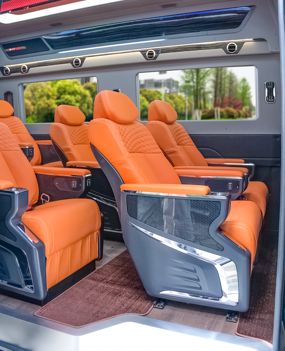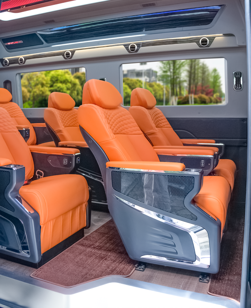 Cấu hình 10 ghế VIP tích hợp nâng chân, ngả lưng chỉnh điện và massage túi khí, mang đến trải nghiệm thư giãn toàn diện và thoải mái trên mọi hành trình.