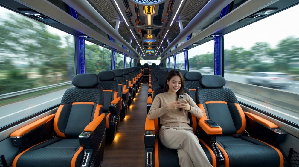 Không gian nội thất rộng rãi 34 ghế VIP tiện nghi cùng khả năng vận hành ổn định