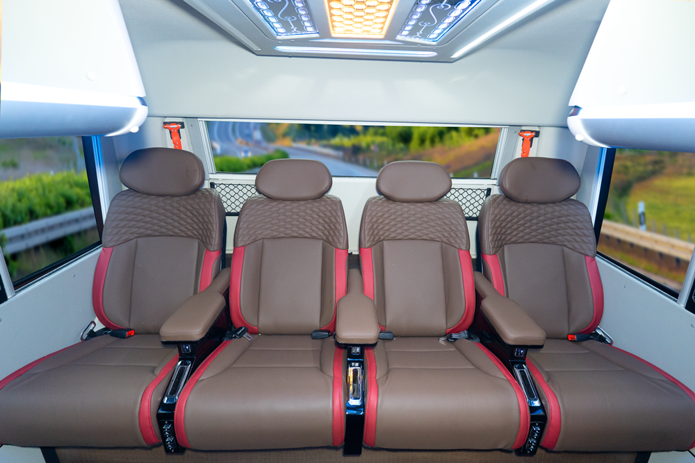 Cấu hình 10 ghế VIP tích hợp nâng chân, ngả lưng chỉnh điện và massage túi khí, mang đến trải nghiệm thư giãn toàn diện và thoải mái trên mọi hành trình.