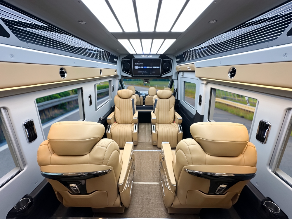 Cấu hình 10 ghế VIP tích hợp nâng chân, ngả lưng chỉnh điện và massage túi khí, mang đến trải nghiệm thư giãn toàn diện và thoải mái trên mọi hành trình.