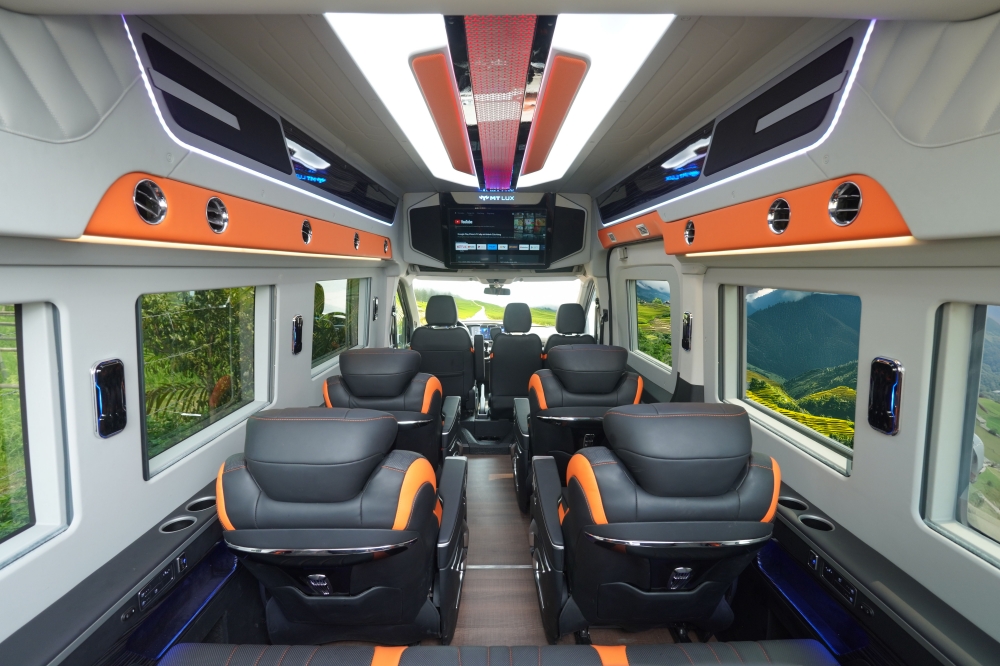 Cấu hình 10 ghế VIP tích hợp nâng chân, ngả lưng chỉnh điện và massage túi khí, mang đến trải nghiệm thư giãn toàn diện và thoải mái trên mọi hành trình.