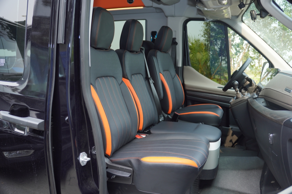 Hai ghế đầu khoang khách có khả năng xoay 180 độ, tạo nên không gian tương tác linh hoạt, riêng tư và sang trọng, lý tưởng cho các hành trình đón tiếp khách VIP hoặc phục vụ nhu cầu cá nhân hóa trải nghiệm